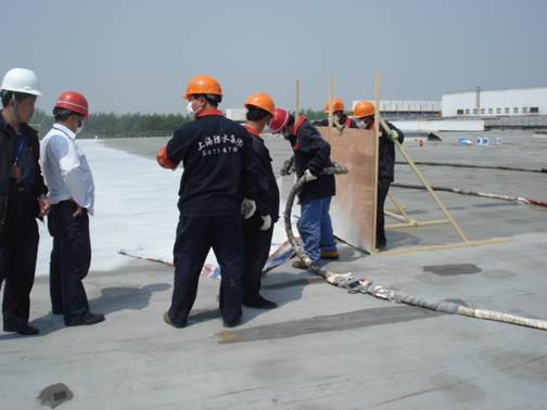 屋面防水工程,施工面積為185000㎡;采用的是氯化聚乙烯(603防水卷材)、聚脲系列涂料、PVC卷材,單組份聚氨脂涂料、金球牌JQ-168、純丙烯酸彈性涂料等。
