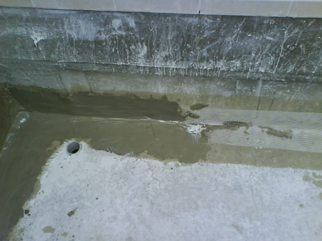 屋頂防水工程 L角鋪設(shè)加強網(wǎng)以往屋頂漏水的部位,大部份都發(fā)生在這個L 角和漏水管旁邊,因為L角的女兒墻和地坪不是一體成型有二次的施工接縫,本工法采用海菜水泥膏,在二次接縫部分加強防水層的抗拉性