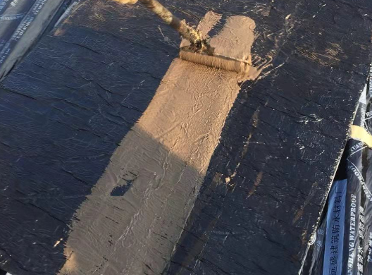 5、廠房彩鋼瓦屋面(天溝 、搭接縫、采光板、風(fēng)機(jī)等設(shè)備)薄弱部分做完增強(qiáng)層之后,進(jìn)行防水涂料一布四涂施工。